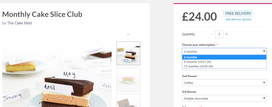 For example: monthly cake slice club where customers choose from 3 months, 6 months or 12 months and pay for the full duration when they order.