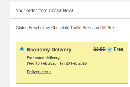 - Once you get to the Delivery options page at checkout, you will see that the free delivery has been automatically applied for you.