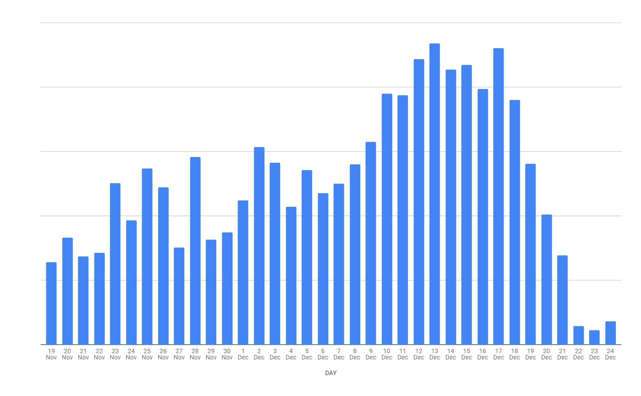 Here is what order volumes by day in the run up to Christmas 2018 looked like: