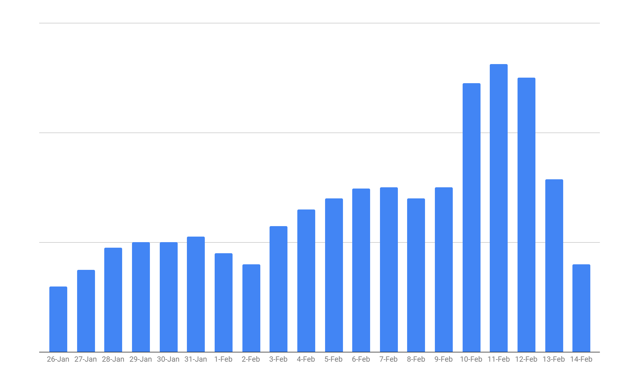 Here is what Valentine’s Day 2019 order volumes look like by day: